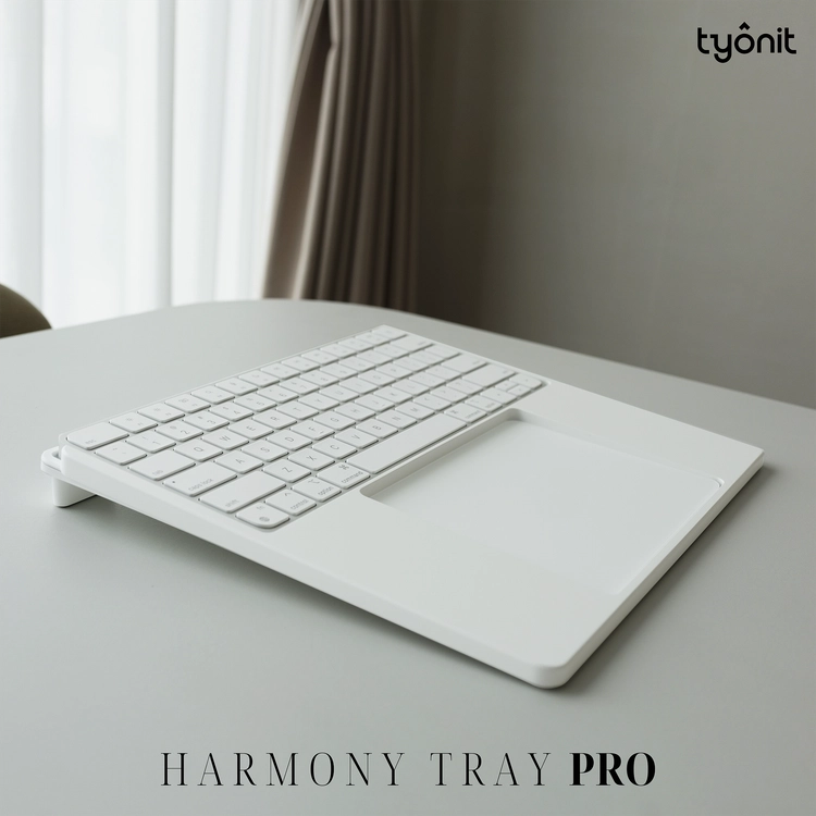 이러한 맥북의 이상적인 레이아웃을 데스크탑 사용자에게도 제공하고자 하모니트레이를 개발했습니다. 매직 키보드와 매직 트랙패드를 하나로 결합해 더 편안하고 효율적인 작업 환경을 제공합니다.