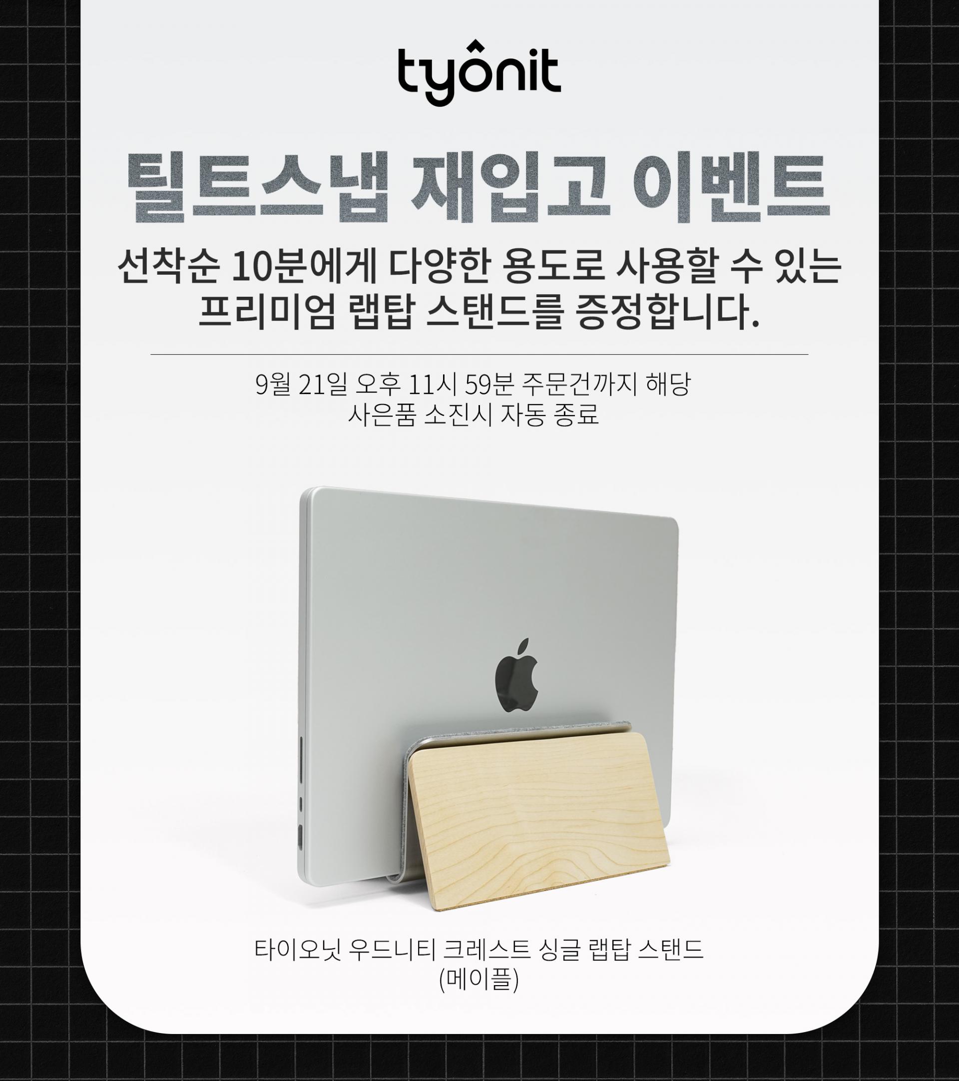 타이오닛 틸트스냅 맥북 거치대, 스페이스그레이, 맥북프로 14&16인치 전용, 클램쉘 모드 스탠드, 수직 거치대